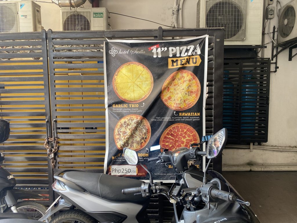 ピザは4種類、250ペソなので屋台飯より少し高いくらいですね。