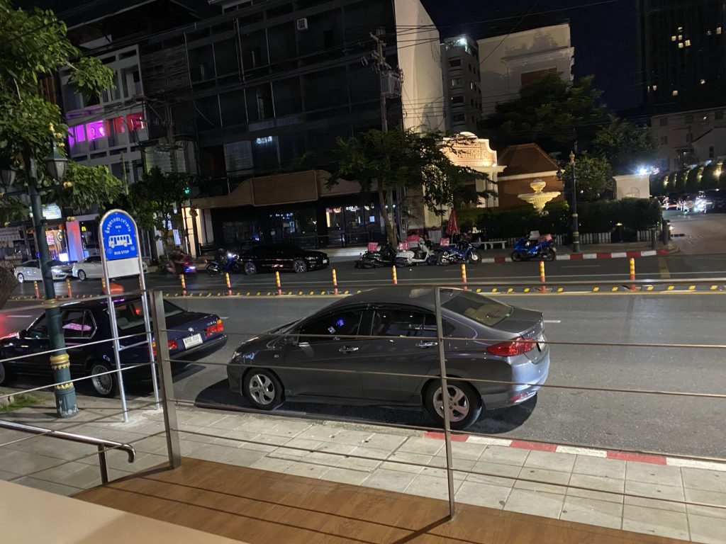 夜はここでのんびりできました。人通り、車通りもまばらで、程よい感じに、、